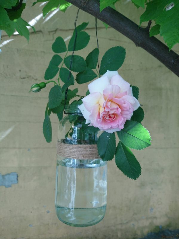 Står du overfor at skulle holde en have-/sommerfest, kan syltetøjsglas med hank også gøre det som rigtig fine hængende vaser, som fyldes med vand og friske blomster (se billede i starten af dette blogindlæg).