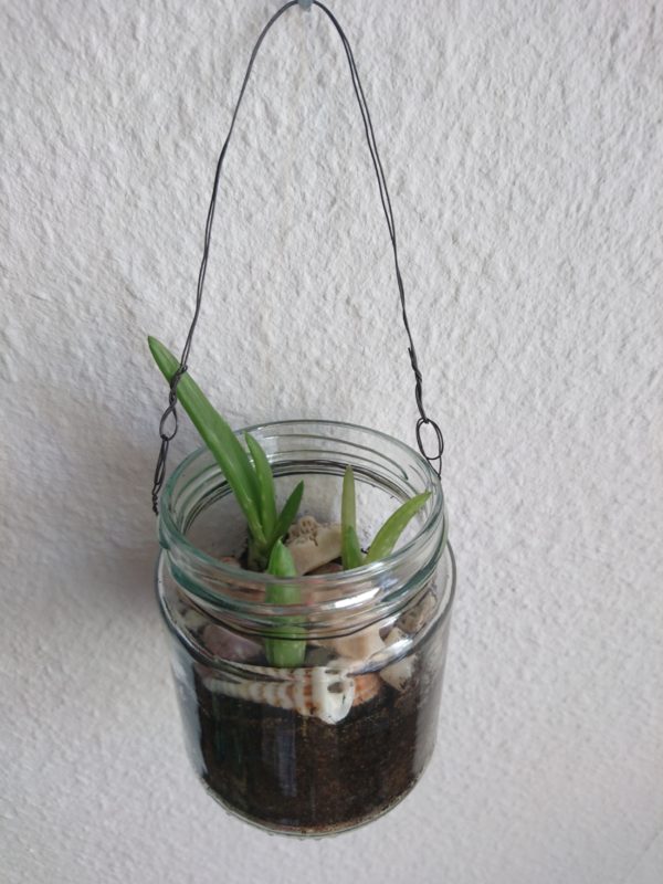 Du kan også bruge dit glas med hank, som en lille potte til planter. Plant f.eks. små sukkulenter i glasset. Fyld pottemuld i glasset, plant dine sukkulenter og slut af med et lag af småsten. Da glasset er gennemsigtigt kan man se alle lag, hvilket giver mulighed for at være ekstra kreativ. Start f.eks. med at lægge et lag af småsten i bunden af glasset, som samtidig fungerer som dræn. Herefter lægges pottemulden i, planterne sættes i og der afsluttes med endnu et lag af småsten.