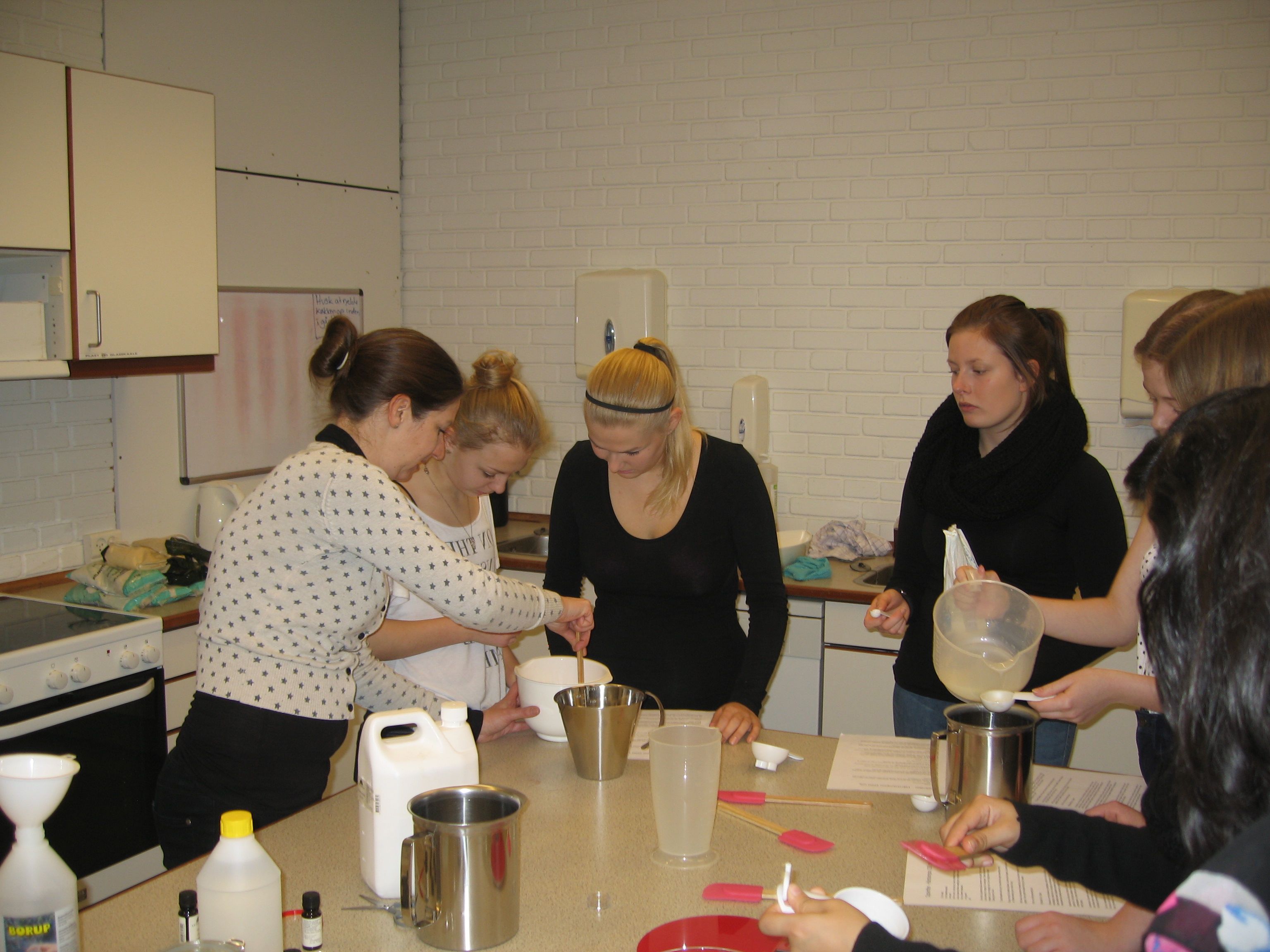 Vølven vejledte kyndigt de unge piger i hvordan man laver lækre personlige produkter, bl.a. shampoo, læbepomade og body scrubs. Til sidst kunne eleverne gå hjem med de lækre produkter til dem selv – og til julegaver til deres familie.
